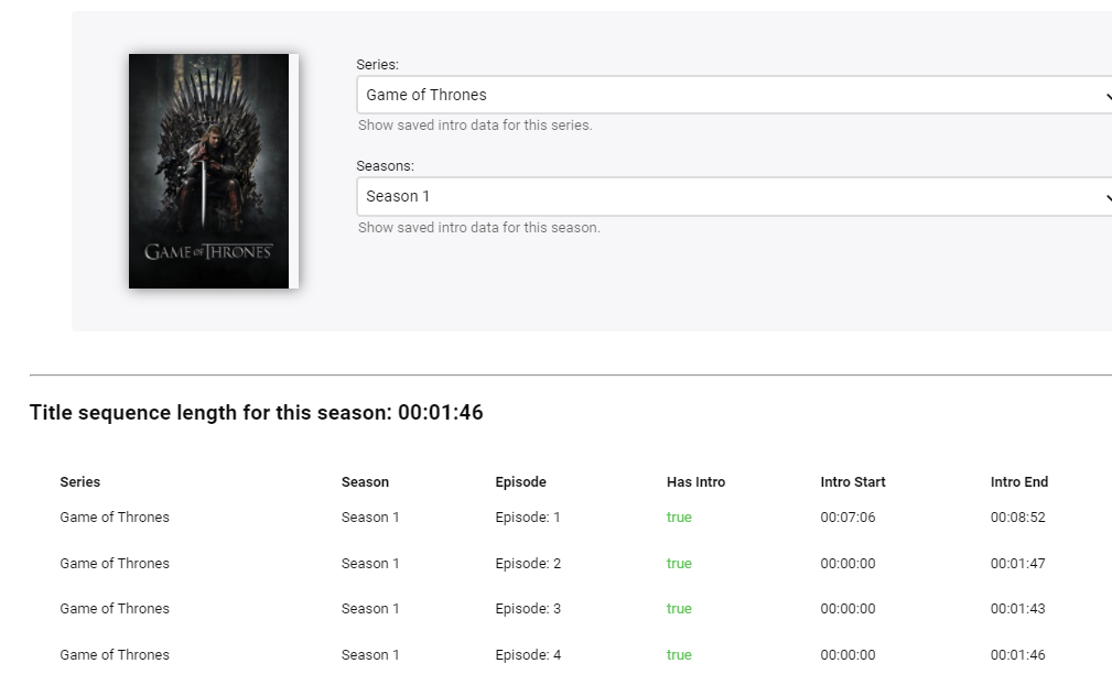 rbjtech 5284 Posted August 19, 2021 Posted August 19, 2021 I think GoT is an edge case - if new to the show, then watching the Intro 7 minutes in for s1e1 really isn't a problem - because all other episodes are picked up correctly - and your code did exactly as it should - it reported that s1e1 did not have an Intro (to match any other episode) - which is correct. That is all great for nicely authored shows - but in the case of another GoT source - where people have chopped off the recap, chopped off the HBO etc - then this is where your code understandably struggles because it is simply not being able to match like for like, but that is no fault of the code - the problem is the variable quality media. I've still been unable to properly edit s1e1 to add the Intro (incl the HBO) to after the 7 min mark - but removing it (see below) produces the correct results - so I'm confident it would behave in exactly the same way. I'm going to add a few more shows and see what happens - but I think we are good .. @chef 1