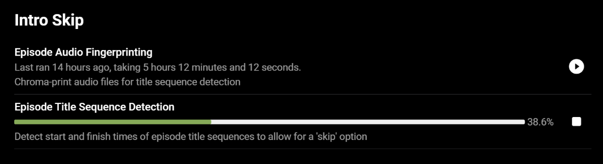 Sammy 790 Posted August 20, 2021 Posted August 20, 2021 (edited) Finally finished! I wonder if the scheduled run of Fingerprinting disrupted the creation of the Title Sequence Detection? Should there be a check to prevent this since it takes half a day to run the Episode Title Sequence Detection? Edited August 20, 2021 by Sammy 1