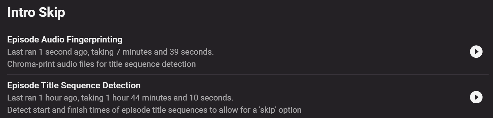 chef 3810 Posted August 25, 2021 Posted August 25, 2021 2 hours ago, rbjtech said: Probably best to wait for @chef as I'm now having issues with the sequence detection not working - as has been posted above. edit - it was me experimenting with lowering the 10 sec value to 5 to try and catch some small intro's - putting it back to 10 and everything is good again. I'll continue to experiment .. so far results have been 100% detection rate for me but that's only on 5 test shows/5 seasons ... but looking good. Fingerprinting is pretty fast - but detection is 'slow' (set to 1 show at a time) but tbh, I've no idea what is involved here - cpu is sitting pretty much idle while the task is running - so it could be throttling itself to not kill the cpu ? Set to 1? Interesting. That might take a while.