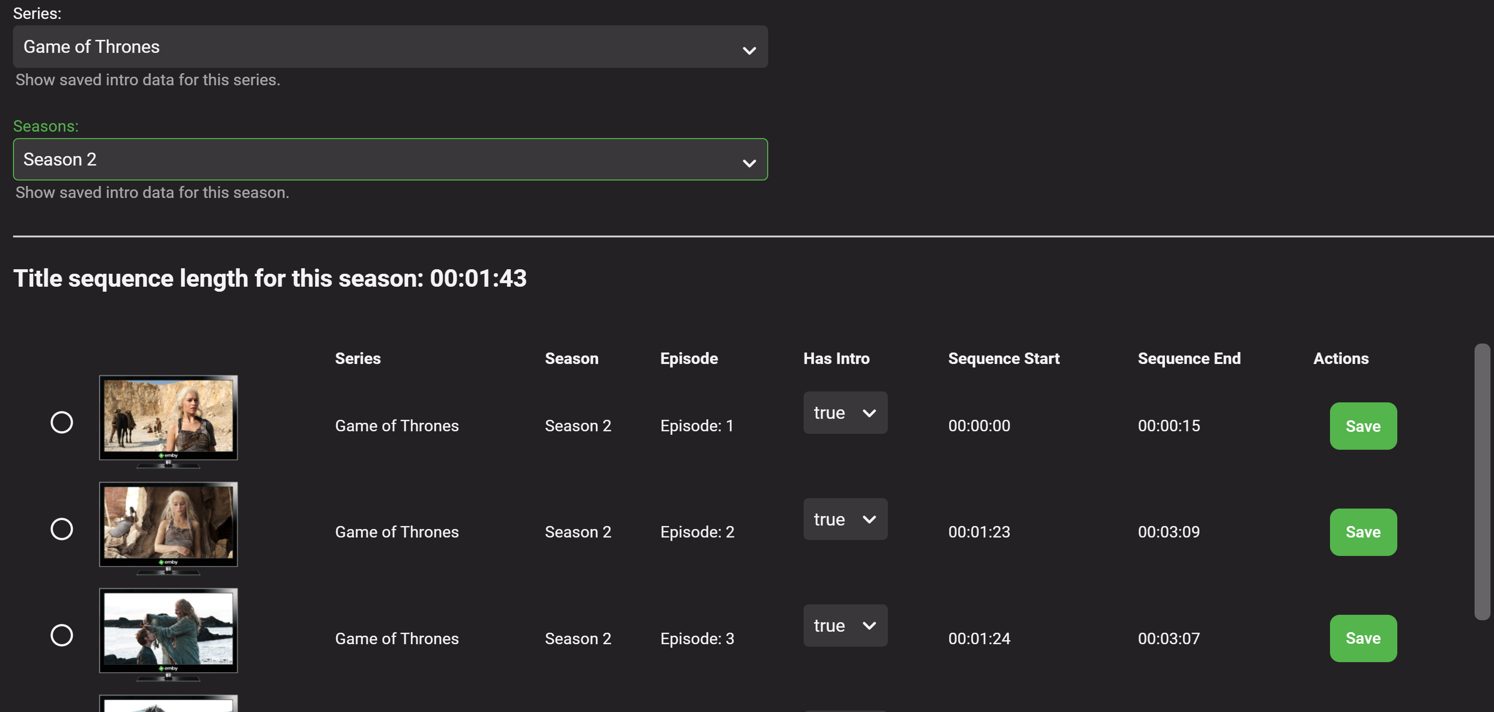 chef 3810 Posted September 13, 2021 Posted September 13, 2021 (edited) Darn I have to go to work! Here is the GetEpisodeTitleSequence return data: { "IndexNumber": 1, "InternalId": 40, "HasSequence": true, "TitleSequenceStart": "PT1M57S", "TitleSequenceEnd": "PT2M27S", "SeriesId": 5, "SeasonId": 29 } I'll have to write a query for a season Result of BaseTitleSequence when I get home. I'll also have to get all sync'd properly in my solution. It shouldn't be to difficult to write the Base for season Data. I wish I could code longer today... Darn! Edited September 13, 2021 by chef 1