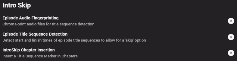 CBers 7450 Posted September 15, 2021 Posted September 15, 2021 Just now, chef said: The first drop down will allow you to choose a series, and the second will allow you to choose a season of that series to populate the list full of episodes. Does that not make sense when it is the first time looking at the UI? No, not really. I expected the process to only work against the selected TV show. Also, what order does the processing work, as it seems to have started half-way though the list of TV Show, rather than A-Z? 2021-09-15 12:40:23.255 Info Intro Skip: Chroma-print database contains 0 items. 2021-09-15 12:40:23.267 Info Intro Skip: Father Brown (2013) - Season 9 chromaprint profile is up to date. 2021-09-15 12:40:24.798 Debug Intro Skip: The Falcon and the Winter Soldier - S:1 - E:0: Extracting chunks from binary chroma-print. 2021-09-15 12:40:24.799 Debug Intro Skip: The Falcon and the Winter Soldier - S:1 - E:0: .bin file removed. 2021-09-15 12:40:24.799 Info Intro Skip: The Falcon and the Winter Soldier - S:1 - E:0: Saving. 2021-09-15 12:40:24.804 Info Intro Skip: The Falcon and the Winter Soldier - S:1 - E:0 complete - 1 seconds. 2021-09-15 12:40:25.332 Debug Intro Skip: Silent Witness - S:24 - E:4: Extracting chunks from binary chroma-print. 2021-09-15 12:40:25.336 Debug Intro Skip: Silent Witness - S:24 - E:4: .bin file removed. 2021-09-15 12:40:25.336 Info Intro Skip: Silent Witness - S:24 - E:4: Saving. 2021-09-15 12:40:25.337 Info Intro Skip: Silent Witness - S:24 - E:4 complete - 2 seconds. 2021-09-15 12:40:26.146 Debug Intro Skip: The Expanse - S:5 - E:0: Extracting chunks from binary chroma-print. 2021-09-15 12:40:26.147 Debug Intro Skip: The Expanse - S:5 - E:0: .bin file removed. 2021-09-15 12:40:26.147 Info Intro Skip: The Expanse - S:5 - E:0: Saving. 2021-09-15 12:40:26.147 Info Intro Skip: The Expanse - S:5 - E:0 complete - 1 seconds. 2021-09-15 12:40:38.319 Debug Intro Skip: Manifest - S:3 - E:1: Extracting chunks from binary chroma-print. 2021-09-15 12:40:38.327 Debug Intro Skip: Manifest - S:3 - E:1: .bin file removed. 2021-09-15 12:40:38.327 Info Intro Skip: Manifest - S:3 - E:1: Saving. 2021-09-15 12:40:38.329 Info Intro Skip: Manifest - S:3 - E:1 complete - 15 seconds. I have "Maximum parallel series to process at once" set to 4. 1