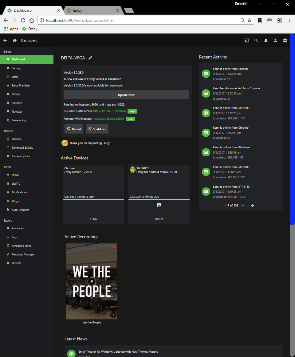 kanipek 230 Posted September 1, 2017 Posted September 1, 2017 What about on the server dashboard front page? We are starting to blend in active recordings with your normal content so they should just appear wherever they belong as soon as they start recording (like in latest recordings or the show listing itself). Active Recordings appear on the Dashboard for 3.2.28. Not 3.2.30. See screenshots.