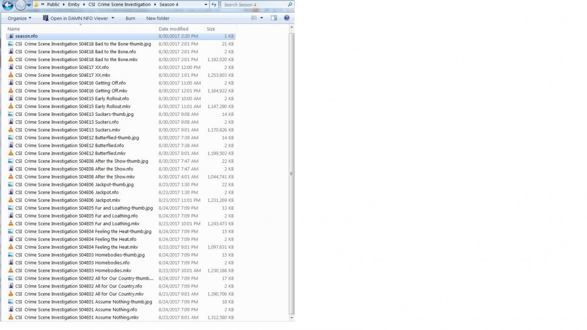 csadoian 36 Posted August 30, 2017 Posted August 30, 2017 Ever since the problem with the guide surfaced a week ago, I have been having what appear to be "glitches" in my scheduled recordings. To give you an example, today I am recording a bunch of CSI:Las Vegas Episodes being broadcast back-to-back on Oxygen. I've recorded some of these in the past, played them, and then deleted them, but still have quite a few on hand. So Emby was recording most of these episodes today, but at 2pm it stopped, even though there are 10 more being broadcast today. Out of the 10 remaining, there are three episodes, S4:E9,10,11 that I don't have already recorded. But Emby will not record them. I can understand Emby not recording episodes of the ones I have on hand, but why won't it record the ones I don't have? My series settings are "All Episodes", but don't record those already in my Library. Only record on the Oxygen channel, and keep as many as possible. I have attached a screen shot of the raw folder on my NAS drive that shows what episodes I have in Season 4. This matches up with what Emby shows. Yet Emby won't record these episodes automatically. As far as I know Emby does not give a reason why it doesn't record an episode in a series, so I'm not sure why this is happening. Is there a place in Emby that a user can be told WHY a particular episode isn't being recorded (I would think on the SERIES section, where is shows upcoming episodes and if they are being recorded or not). Of course, I can always MANUALLY record the episodes, but that's not the point. Is there some where in Emby that keeps track of episodes I've recorded, watched and then deleted? Also attached is my server log. server-63639680840.txt