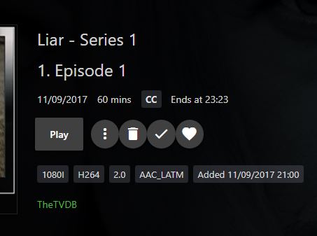 CBers 7450 Posted September 11, 2017 Posted September 11, 2017 The shows are on at 9pm (BBC1 & ITV1), one is called Rellik and the other is Liar @@paulsalter Both series were created with a "Season 1" folder, from both IPTV and HDHomeRun sources.