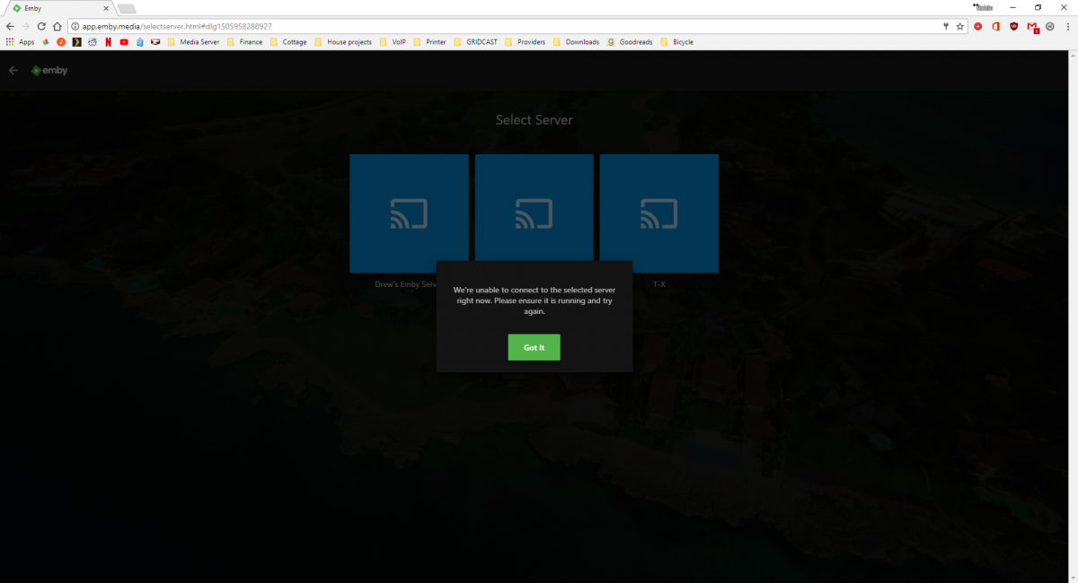 The unRAID system is behaving wonderfully... when I'm on the same network. For some reason, whenever I try to access it on any user from off of my home network, I get the error "We're unable to connect to the selected server right now. Please ensure it is running and try again."