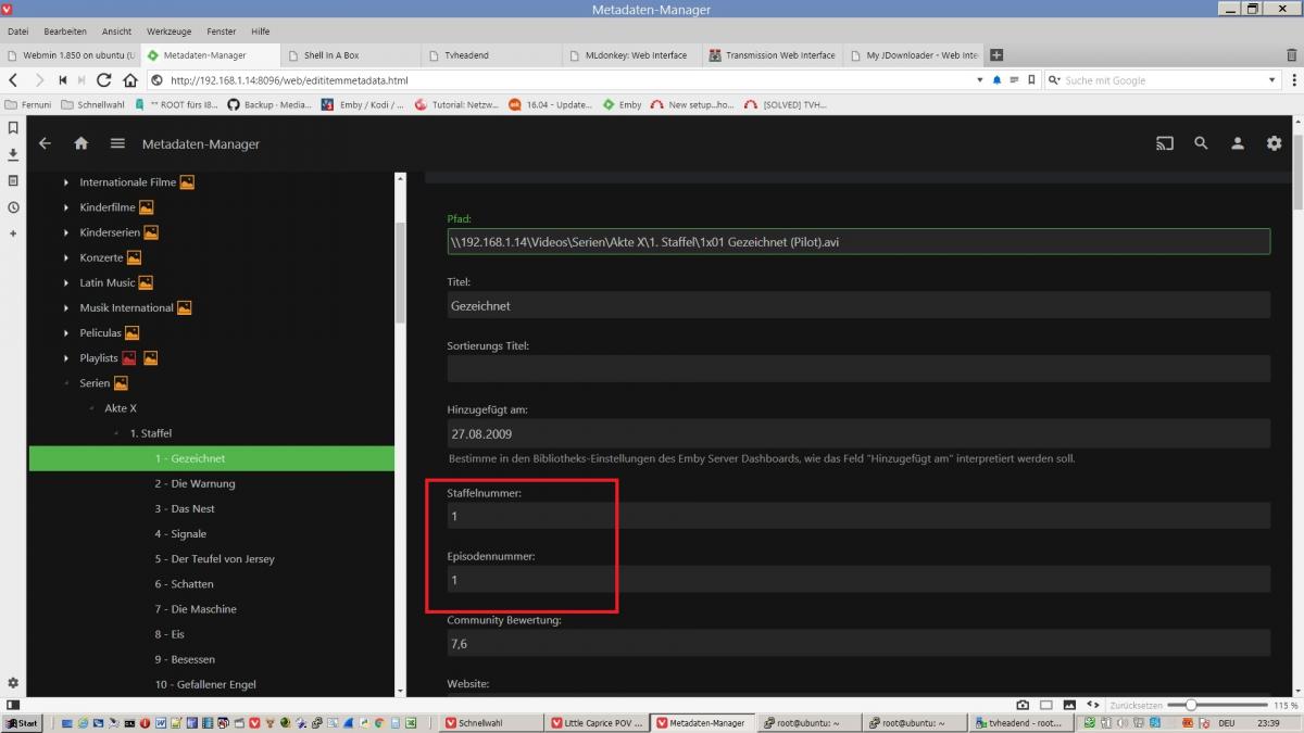 malvinas2 0 Posted October 11, 2017 Author Posted October 11, 2017 Adding some regex-functionality to analyse the folder name (e.g. Season 01, Season 1, 01. Season, 1. Season, S1 etc.) the season is missing the season number because we don't recognize the "1.staffel" name. that's something we can look at supporting though.