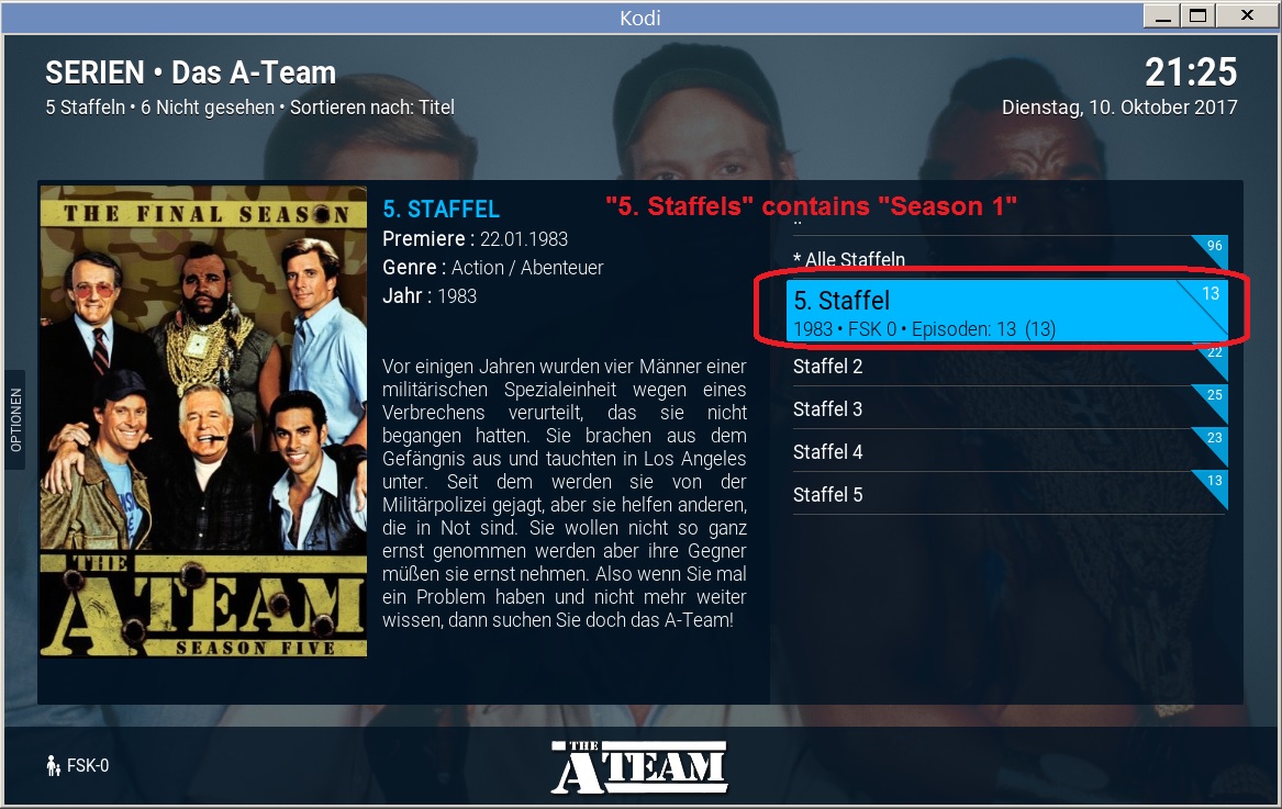 Luke 42078 Posted October 10, 2017 Posted October 10, 2017 the season is missing the season number because we don't recognize the "1.staffel" name. that's something we can look at supporting though. 1