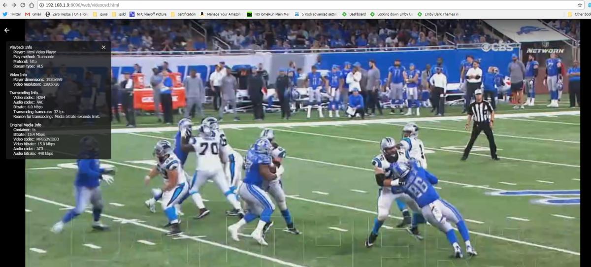 blade005 185 Posted October 13, 2017 Posted October 13, 2017 I'm using the standalone version on Windows 7 not the app store version. I've included a screencap below with the stats for nerds displayed. Any ideas? In my server setttings I have the following: Automatically convert recordings to a streaming friendly format - OFF Preserve original video when converting recordings - ON Preserve original audio when converting - ON @@neush1 I don't know if these should impact Live TV streaming, but try turning OFF Preserve Original Video and Audio when converting settings and SAVE. I have three (3) HDHomeRun Connect devices and Live TV DIRECT PLAYS with Emby Theater Desktop and I have these set to OFF. These settings that are ON state they are for converting recordings, but maybe they are impacting your Live TV playback experience. Worth a try, plus they should probably be set to OFF if you have convert recordings set to OFF. 1