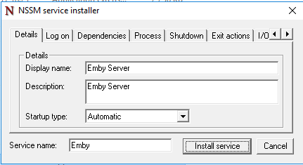naeonline 27 Posted October 26, 2017 Posted October 26, 2017 Alternatively, instead of a service you can just create a scheduled task to run emby. Choose the options to run as a user without having to be logged on and run the scheduled task when the computer starts up.