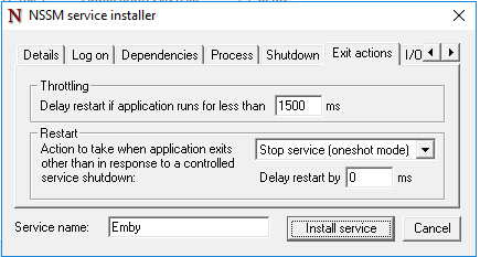 danswan 13 Posted October 23, 2017 Posted October 23, 2017 (edited) I've followed the guide to create the Emby Service, I've created a few other services using NSSM with no issue, but I can't get Emby to work. The guide is a little unclear, as I wasn't sure whether to use NSSM 64 or 32bit (it's a 64bit server, as you'd expect), but I've tried both ways, and either way I get the same thing. It's showing up in my list of services, but when I try to start it, it immediately stops. Event viewer just says "Service cannot be started. The service process could not connect to the service controller" I can see on here that other people have got this working OK. What have I done wrong? Edited October 25, 2017 by danswan