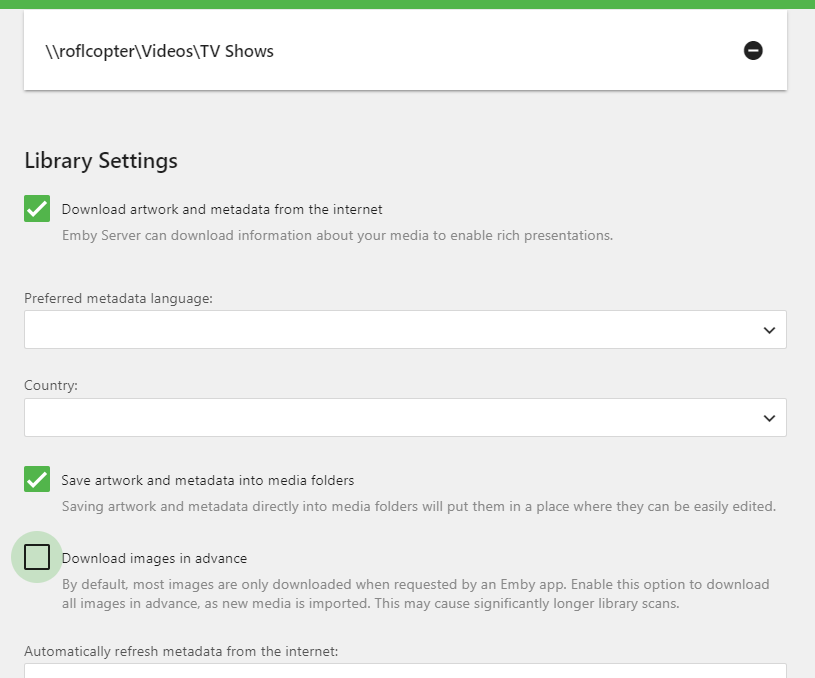 BenDover 3 Posted December 5, 2017 Author Posted December 5, 2017 Type: TV Root of TV shows folder is what the library is pointed at. Settings attached. I was thinking maybe overtime its stuck in the library somewhere and won't remove?