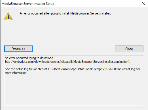 jbanera 0 Posted December 30, 2017 Posted December 30, 2017 I seem to be having the same (maybe different) problem in trying to install the 3.2.60 update manually. I have attached the install.log file as well as the screenshot of the error I get when I try to run the setup.exe server download. MediaBrowser.Server.Installer?? and then the error occurred trying to download. Any ideas? install.log