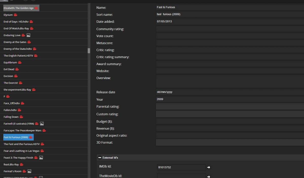 dtaylor 0 Posted March 11, 2014 Posted March 11, 2014 Hi Total noob to mediabrowser and just finding my way around so bare with me. All my movies have .nfo files already and I have used xbmc for some time. I installed the xbmc metadata plugin so that any updates to metadata will be in the xbmc required format. A few movies appear in mediabrower to be short of some data so I tried a refresh. Nothing happens after the spinning icon stops. No metadata is downloaded?? I note in the settings that only two scrapers appear "Open movie DB and ThemovieDB " isn't there a scraper to get info from IMDB?? Anyway I switched the metadata scraper to use The MovieDB as first option but still nothing. How do I get this to work please? None of the movies are read only and I even closed down my firewall in case MB was being stopped accessing the web.