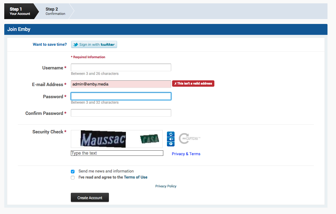 Emby Connect SignUp Issue
