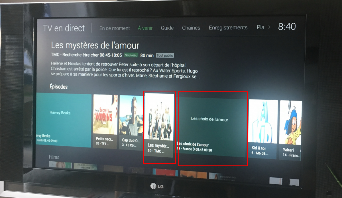 ebr 16172 Posted February 8, 2018 Posted February 8, 2018 It seems that any program that has no image is displayed as poster size. Here is an example of a program with no image that you can see on a previous picture. The movie category on the EPG parameters is set to its default value "movie" so this program should not be considered as a movie. <programme start="20180207084500 +0100" stop="20180207093000 +0100" channel="FranceO.fr"> <title>Les choix de l'amour</title> <episode-num system="xmltv_ns">0.78.</episode-num> <desc lang="fr">Dans la ville de Agua Azul vit Montserrat Mendoza, jeune fille de la bonne société dont la famille est ruinée. Elle tombe amoureuse de José Luis, un jeune marin pauvre. Or, elle était fiancée au riche Sebastian qui revient de Londres où il faisait ses études et, découvrant la relation de Montserrat et José Luis, rompt ses fiancailles. Par ailleurs, Alejandro qui est un simple péon, voit sa vie basculer quand son patron mourant, le riche Benjamin Almonte, lui révèle qu'il est son héritier. Très perturbé par cette nouvelle, Alejandro part vers la plage en pleine nuit. là, Montserrat croit que c'est José Luis qui la rejointet l'embrasse</desc> <category lang="fr">Feuilleton</category> <icon src="" /> <rating system="CSA"> <value>Tout public</value> </rating> </programme> Hi. That one isn't displayed as a poster. It is displayed at the thumb size (in your image above) which I would expect because that would be our default without any other information.
