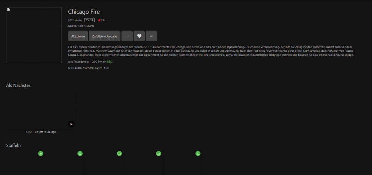 Gummix 4 Posted February 16, 2018 Posted February 16, 2018 (edited) Hallo,ich habe den Emby Server im Docker laufen und unter Kodi als "Addon".Nun habe ich das Problem, dass Emby nicht alle Bilder runter läd und dem entsprechend fehlen die auch in Kodi.Ich habe die Datenbank schon neu Synchronisiert, die Metadaten der Serien versucht neu einzulesen bzw ersetzt.Es sind nicht alle Serien betroffen sondern nur ein paar wie z.B. Chicago Fire, Chicago PD, The Last Ship....Identifizieren findet auch nichts, aber weder bei Filmen noch bei Serien. Ist es möglich das Emby keinen Internet Zugang mehr hat (OMV selber hat Internet Zugang, gerade noch getestet)?Bei Mars, Wynonna Earp etc. sind die bilder eigentlich da (zumindest in der Serienübersicht...)Hat jemand eine Idee? Log.txt Edited February 16, 2018 by Gummix