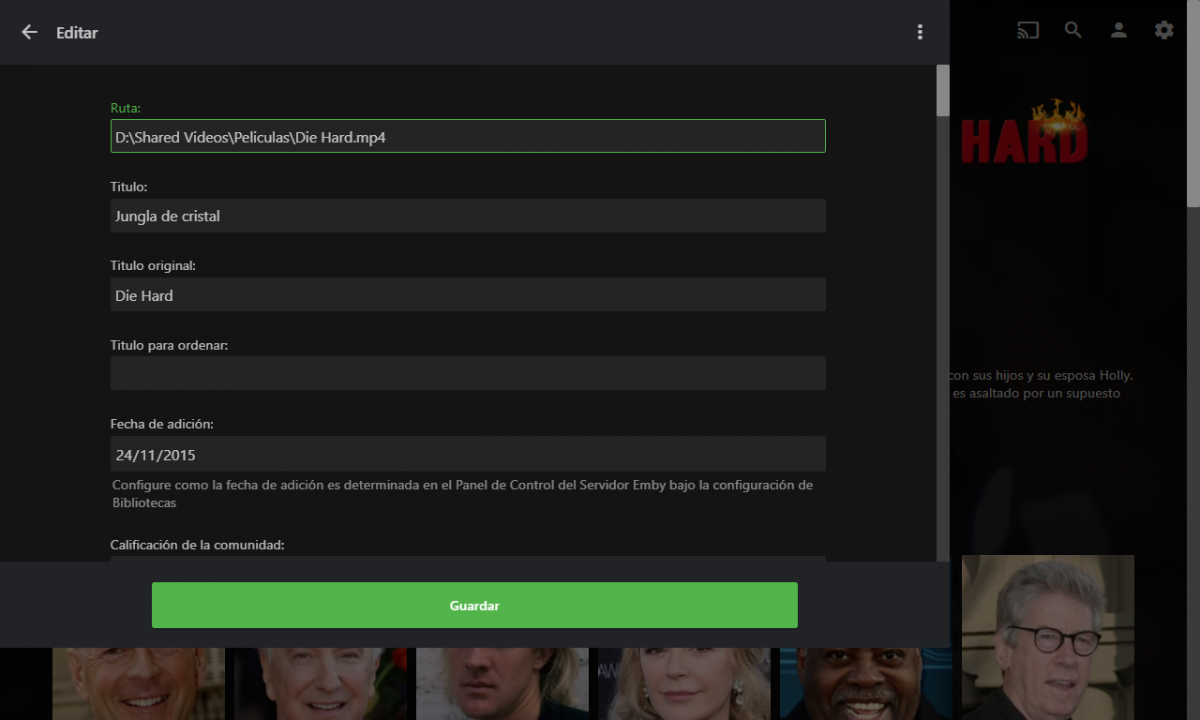luramirez24 0 Posted February 22, 2018 Author Posted February 22, 2018 Oki Doki _ The program Emby its on c: and the movies on d: i attach some files: Movie interfase browser 1.- Diehardinfo 2.- DieHard2 3.- diehard3 4.- diehard4 Library interfase browser 5.- diehard_library_interface Metadata interfase 6.- diehard_metadata 7.- diehard_metadata_images Metadata Storage files D: 8.- Die Hard.info 9- Die Hard.spa.srt 10.- Die Hard-disc.png 11.- Die Hard-landscape.jpg 12.- Die Hard-logo.png 13.- Die Hard-poster.jpg Metadata path on C: 14.- path_metadata_c I really like emby hopefully the comment serves to improve 8.- Die Hard.nfo 9- Die Hard.spa.srt