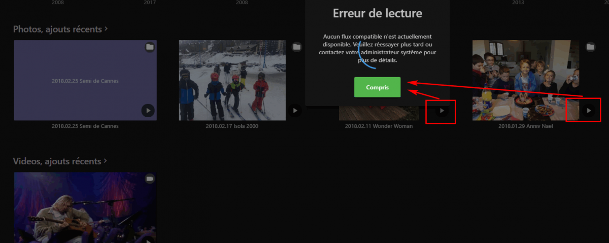 capitaineflam25 71 Posted February 27, 2018 Posted February 27, 2018 (edited) Hi, i have the recent medias on my home page with a line for the "Recents pictures" A "Play" overlay icon is available on each photo album. If i click on an album containing at list one video it plays it, but if i do the same on a full photo album it displays an error. Would it be more adapted to launch the slideshow in any case with this button ? Emby 3.3.0.2 Server for Windows Edited February 27, 2018 by capitaineflam25