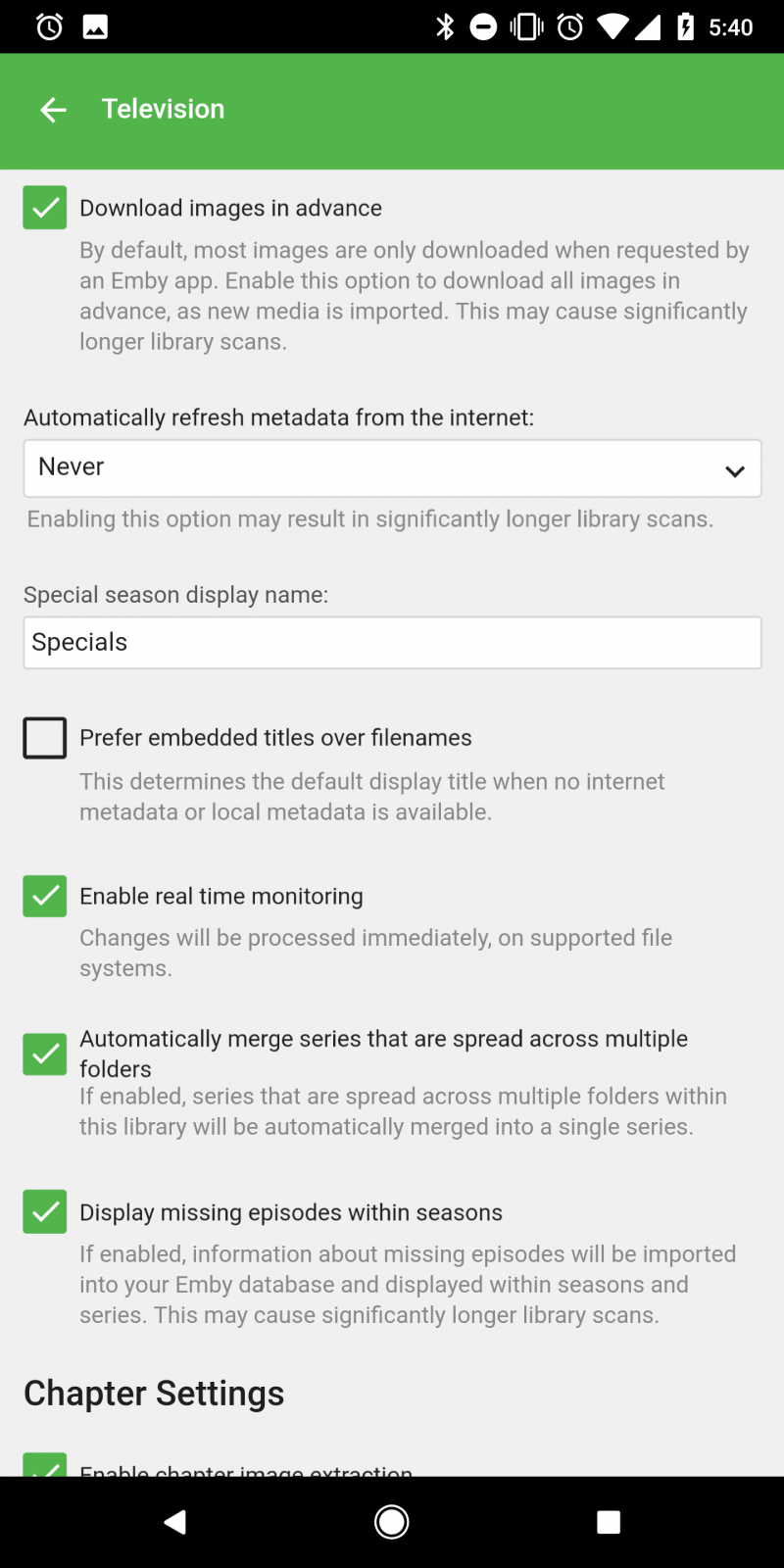 computerprep 148 Posted March 30, 2018 Author Posted March 30, 2018 (edited) And TV library settings The main folder with 98% of the content is the second one listed. UNC permissions are set correctly for the server to have read write permissions Edited March 30, 2018 by computerprep