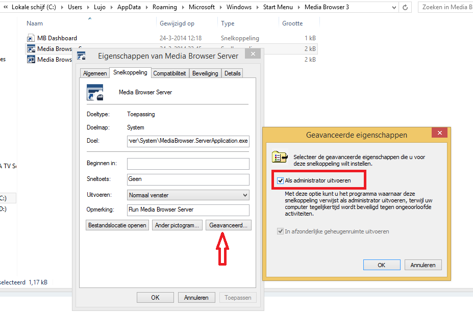 lujo 0 Posted March 25, 2014 Author Posted March 25, 2014 (edited) After turning UAC off server still doesn't work. The only option what was helping in my case was to go to C:\Users\Lujo\AppData\Roaming\Microsoft\Windows\Start Menu\Media Browser 3 select Media Browser Server.exe (right mouse button) and select Run as Administrator. Is it possible to add that Server Always run as a Administrator? So it is not needed that user select this. Edited March 24, 2014 by lujo