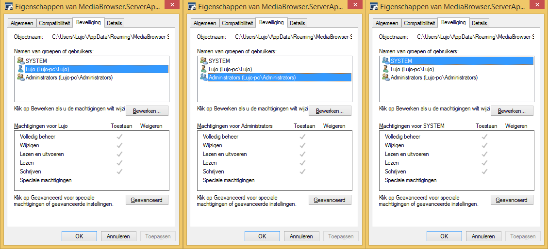 lujo 0 Posted March 24, 2014 Posted March 24, 2014 (edited) Hi, I am using Windows 8.1 Pro and didn't installed MB3 service but using it with tray icon. I mean the service is installed but not started. First example when MB3 server is working: When I go to Apps in Windows 8.1 click right on MB3 Server and select Run as Administrator MB3 server is starting and working without problem. Restarting it with tray icon or from dashboard is also no problem. Example when MB3 server is not working: When I only click on MB3 Server I can also see tray icon but dashbord is not working: http://localhost:8096/mediabrowser/dashboard/dashboard.html gives message that this page cannot be viewed.. My default accountname, Lujo, is also Administrator. logs.zip Edited March 24, 2014 by lujo