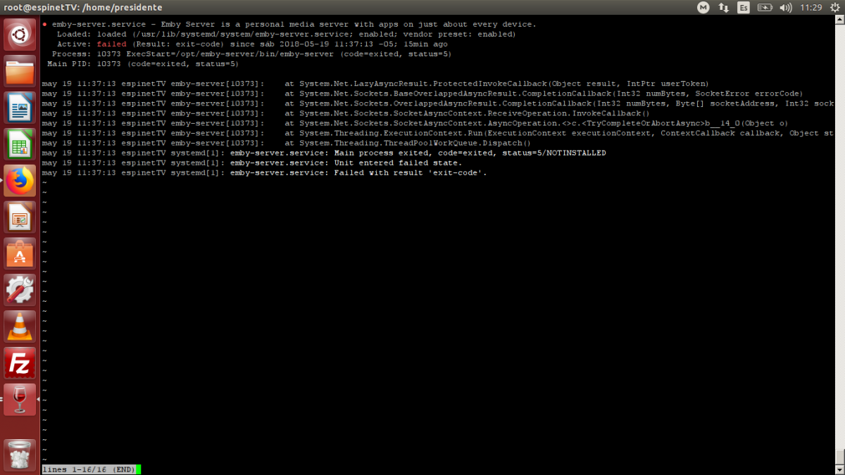 ESPINET 0 Posted May 18, 2018 Posted May 18, 2018 Hola comunidad de EMBY ayuda con un detalle en mi server emby el SERVER funcionaba reguarlmente bien, hasta que instale las 2 ultimas versiones y ahora con la 3.4.1.0 es problemático, mi servicio se cierra, tengo que entrar por consola hasta 10 veces al dia y levantar el servicio (service emby-server start), opte por cambiar el disco duro del Sistema operativo(ubuntu server 18.04LTS) a Solido y nada que se resuelve. si alguien me recomienda bajo que distro de linux no da problemas para reinstalar todo. o alguna experiencia con este problema. saludos y gracias por su tiempo dejo el log del sistema. OJO no encuentro ningún soporte técnico directo de EMBY para resolver estos problemas directamente. log emby.txt