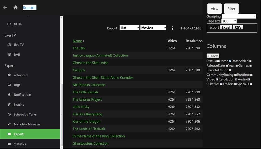 Lighthammer 91 Posted May 19, 2018 Posted May 19, 2018 In previous versions of Emby, there was a section dedicated to being able to find and sort all media on your server with certain parameters such as being able to see all videos using certain codexs or certain resolutions.It feels like this got replaced by Server -> Expert -> Statistics If this is true, the Emby package is now missing a good tool to review the complete manifest of the server. It was useful for determining if the age of videos and what media need to be upgraded. If this tool is still in the Emby, could someone please point me in the direction where it is?