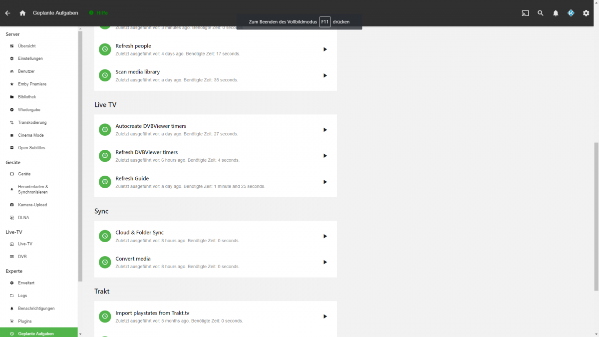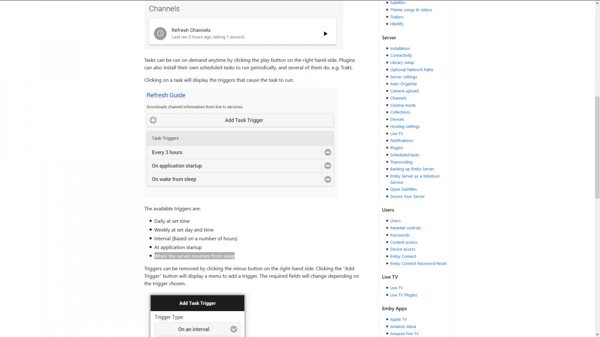 Kodi_Newcomer 27 Posted July 17, 2018 Author Posted July 17, 2018 Any plans for supporting this on windows ? This would be great, because my server runs full automatic, when he do nothing he go to sleep, when he should do something like recording he wake up and do his work, after that he go to sleep again. So when you can support this "trigger after resum from sleep" on windows that would be great. For now i have many task timers for some task that at the most time it works on the fly. But i dont know how good is this for performance and emby, when he has so many timers for some task's ? Or maybe there is another option, like the same on windows. Run Task directly after he is missing when the system runs again.