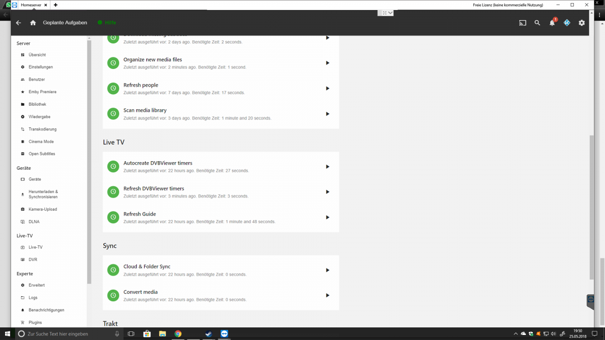 Kodi_Newcomer 27 Posted May 25, 2018 Author Posted May 25, 2018 Server log? Log is incoming again. 2 of 3 task are not start after wakeup. The third one did every day. There it works. I have wake the server up at 19:40 pm some minutes + or -. log.txt