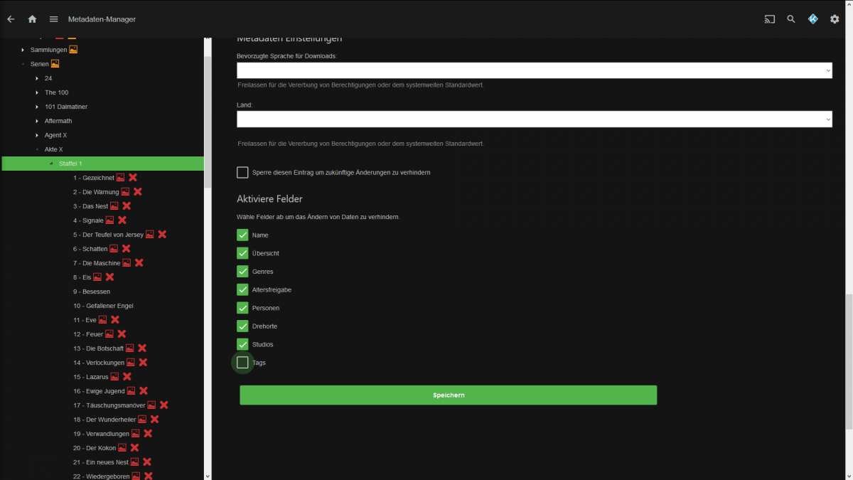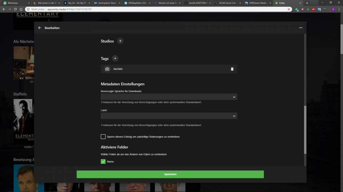 Kodi_Newcomer 27 Posted June 3, 2018 Author Posted June 3, 2018 (edited) In every single season. I have tried it for some different series. Its always the same, maybe he had problems with "NoDMS" as an tag, or can i write down what i want ? I have tag'd some seasons from different series, because prevent dvbviewer plugin to search for episodes to record i dont want. So i see it for example after a week when the next epsiode is coming that he record it, then i look at the metadata settings and see, there is no NoDMS tag anymore. Edited June 3, 2018 by Kodi_Newcomer