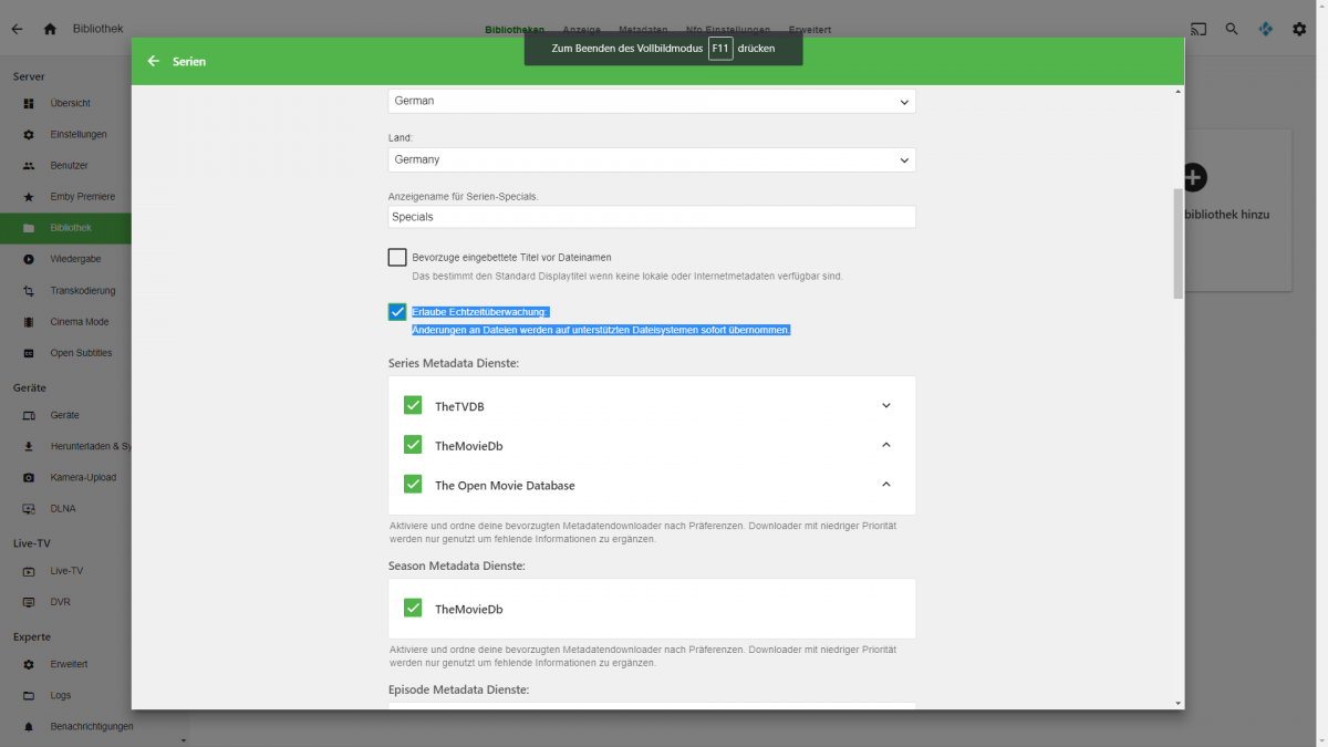 Kodi_Newcomer 27 Posted October 2, 2018 Author Posted October 2, 2018 (edited) If real-time monitoring works in your environment and you have it enabled we might see it in our log but not 100%. Where can i enable it. Sorry guys you are to fast, i have change some thins in my last post. But when another tool is change things in the nfo, for example watch count and stat. Why the Tags Tab will be reset and was unlocked ? Can Emby not hold it locked, when i say this ? Edited October 2, 2018 by Kodi_Newcomer