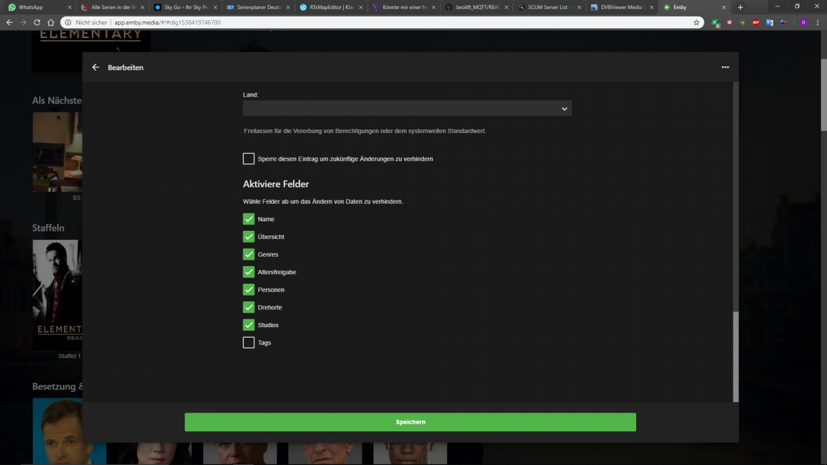 Kodi_Newcomer 27 Posted October 2, 2018 Author Posted October 2, 2018 (edited) The only time Kodi will see files is if you have the sources defined in Kodi with paths to your content. If that is not the case, then it's not Kodi and certainly not the add-on modifying nfos. No all my content is managed over your addon (Emby for Kodi) In Kodi there are no path set to the servers media content. There is set a path to my server but only for backup and other stuff, at this path there are no media content, like movies or series. Ant when i actual not watch the Series, he should not change things in the nfo when another tool inside kodi can do this ? EDIT:: I have trakt running on the Emby server ? Can he change things in nfo ? But then Emby did it and should not change the Tags Tab because its locked. Edited October 2, 2018 by Kodi_Newcomer