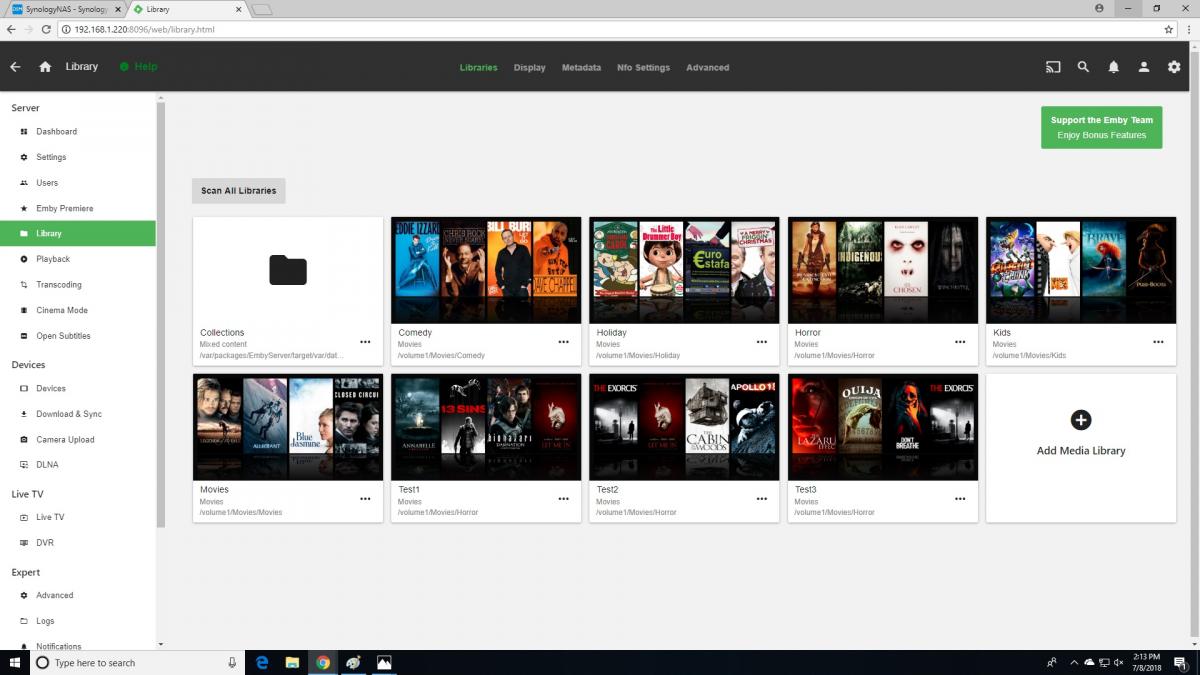 scouser1023 0 Posted July 8, 2018 Author Posted July 8, 2018 Hi Luke, Thank you for the help. I have attached some screen shots. All of the libraries seem to be acting the same, it basically hangs as I don't think the transcoding can handle bluray content. I do have it set up for and external player VLC, VLC is not opening which lead me to the logs and concluding direct play is not working. The same windows client was working fine with a windows VM emby server. On the client I have removed emby and tried both the beta and stable versions without any success. Everything other than direct play looks normal on the client. Share folders - Synology permissions Shares - Permissions in subfolders, same as admin permissions Test1 - Normal suggested pathing Test2 - Remove the final \ from the unc pathing and used IP address Test3 - Removal of the \ from the unc pathing File explorer - showing DNS resolution and IP pathing in windows Lib set up - Creating a lib Lib - Screen shot of the completed scan and libaries Dashboard - Showing everything looking normal...I think I will grab some screenshots from the client shortly. Did you see anything in the logs that did not look right? And is there anything specific you would like a screenshot of? Thank you! Simon