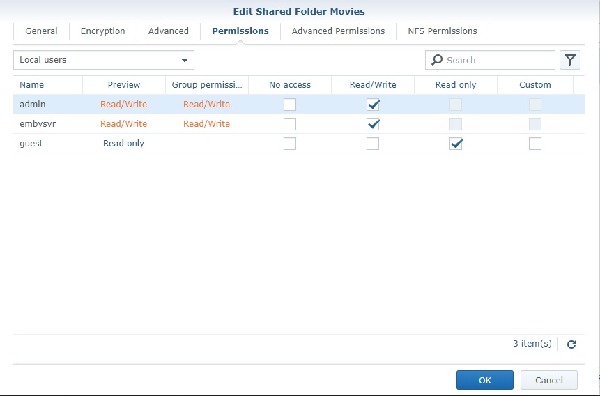 scouser1023 0 Posted July 5, 2018 Author Posted July 5, 2018 Hi Rouq, Yes the shared folder on the nas has read/write access for admin and embysvr. Thanks, Simon