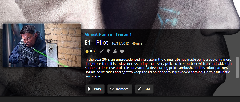 navanod 12 Posted April 3, 2014 Author Posted April 3, 2014 lolwut, think we have different issues (?) I was using MetaBrowser, changed completely to MediaBrowser Server some months ago, deleted all images and metadata files and re-scanned with MBS. My folder structure is: .....\TV Series\Almost Human\Season 01\Almost Human - S01E01 - Pilot.mkv .....\TV Series\Almost Human\Season 01\metadata\Almost Human - S01E01 - Pilot.jpg .....\TV Series\Almost Human\Season 01\metadata\Almost Human - S01E01 - Pilot.xml Standard structure from what I can tell.