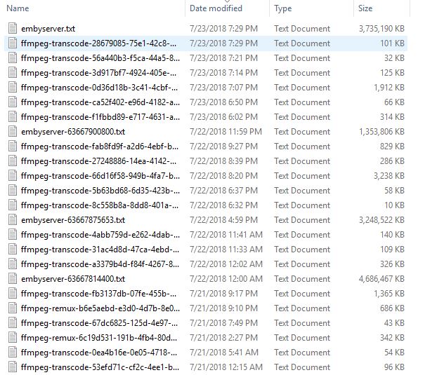 bmoses 9 Posted July 24, 2018 Author Posted July 24, 2018 Hi, have you installed any other plugins? Do you have debug logging enabled? Are you experiencing a problem? attached is a picture of all the plug-ins i have installed. no i do not have debug logging on. no i'm not experiencing any adverse affects from this currently. I just noticed the size was huge when i went to post a thread in the roku section about live tv playback issues. I was going to attach the server log but obviously can't since its so large, nor can i open it with notepad to look through it. So i figured i better post something here in case someone wanted to look at it. as i said, i'm guessing its from all of the library scans from the auto organize feature. that task kicks off every 5 minutes and it takes 3 minutes and 30 seconds for emby to scan my library. so with that option set emby is basically scanning my library constantly. even without the log size issue i would think it would be better for that option to only kick off a scan if it actually organizes a file. if you need anything else from me let me know, thanks!