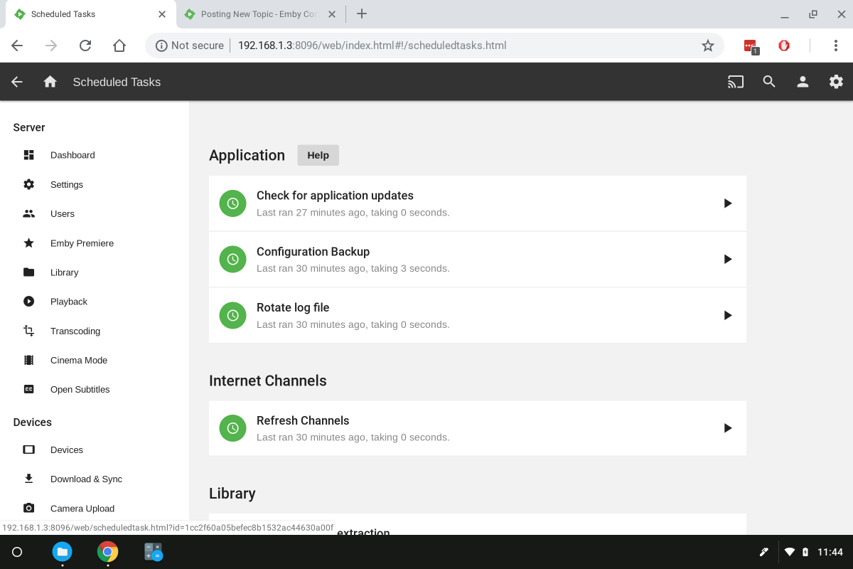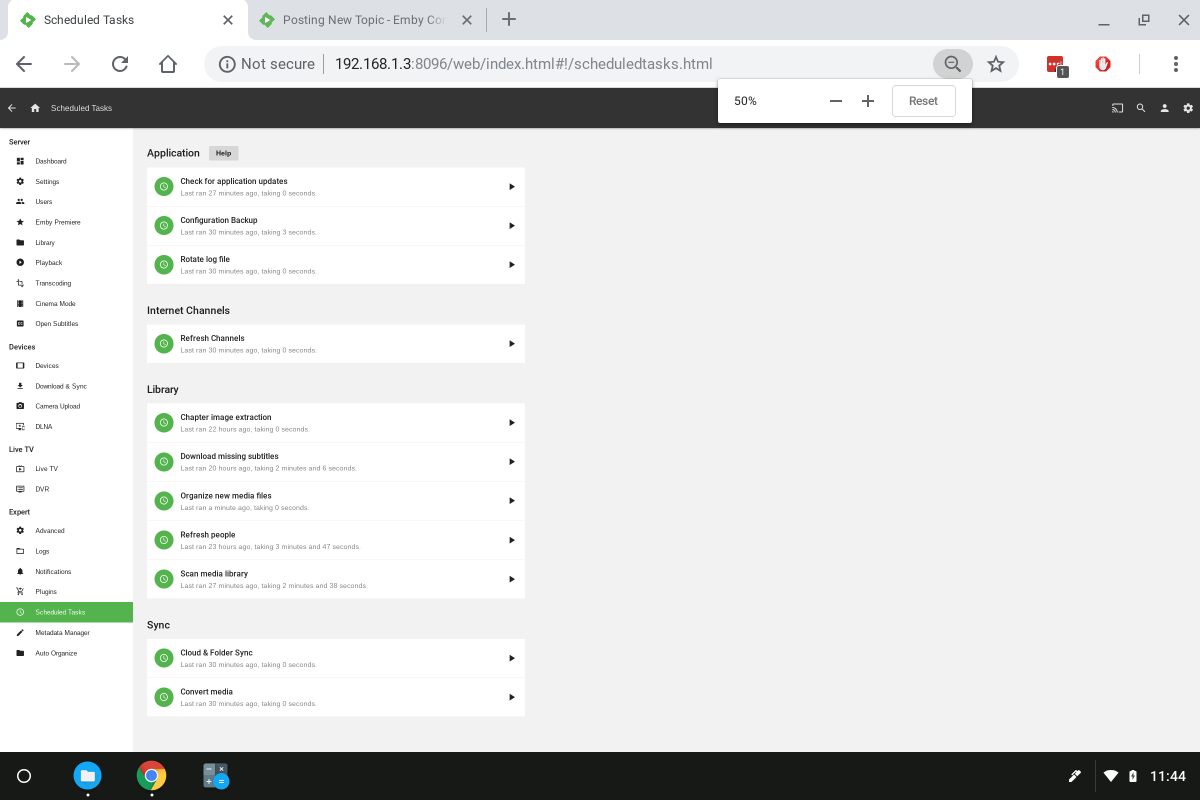 scsherman 2 Posted August 7, 2018 Posted August 7, 2018 I am unable to scroll the main pages when I go to "Manage Server". The scrolling feature moves the menu of the left of the screen fine (Dashboard, Settings.......Scheduled Tasks, Metadata Manager, Auto Organize). But when I am on the right side of the screen, no scrolling action occurs. It is locked or something and there is text and functions I am unable to access. If I zoom out within the browser, the missing data will appear and I can interact with any functions that were missing, but only at a very zoomed out state (small text). Any ideas what would cause this? Synology Server up to date with version 3.5.2.0-1 Chrome OS Version 69.0.3497.21 (Official Build) dev (64-bit) Samsung Chromebook Pro