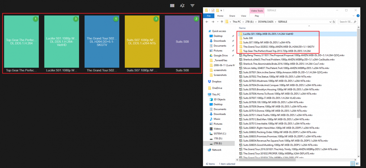 KodiaK 3 Posted August 20, 2018 Author Posted August 20, 2018 It's not so easy when you have to create duplicates for all the TV episodes. Leave the originals in the downloaded location so i can seed them, and them create copies to suit Emby's needs. Another solution would be to reset the download location for each file, but it's very tedious. TBH i don't see any downside to a mish-mash support also, and should not be that hard, since PLEX already supports it