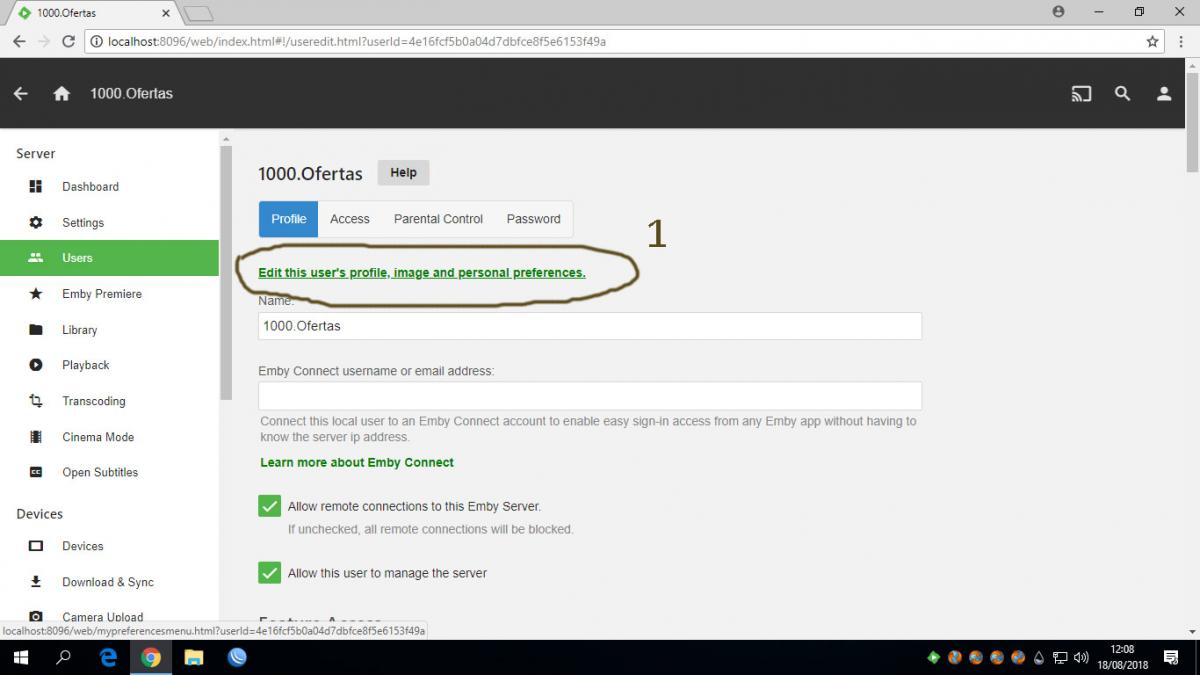 padrecito007 0 Posted August 18, 2018 Author Posted August 18, 2018 (edited) Hi. Sorry, I'm not following the issue. What, exactly, is the problem you are having? Thanks. The problem I'm having is that the video plays at 60Mbps the load is very slow, the stuttered video stutters, I do not know if you understand me. What I want is to lower the speed to 1.5mbps in the "User profiles" The user should enter their computer or TV at the chosen speed of 1.5mbps. But this does not happen. The user continues entering 60mbps. "Auto Option" Emby should save the 1.5mbps speed setting. Edited August 18, 2018 by padrecito007