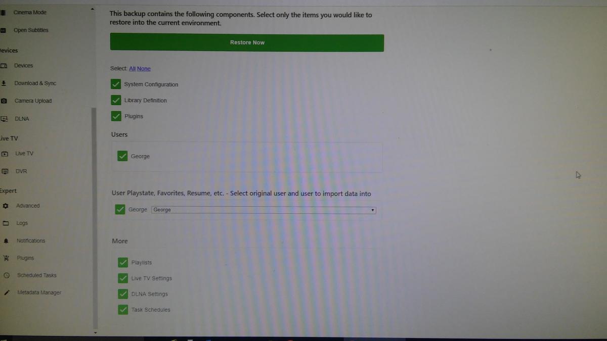 gbatistajr 0 Posted October 3, 2018 Posted October 3, 2018 Hi I am migrating my server over to a new computer. I followed the steps on the wiki page and configured my backup plugin. The settings have been backed up to a folder. I installed Emby on the new machine however I think I'm missing a step. When I install Emby on the new machine, I installed the plugin as well but the plugin doesn't give me an option to configure it so I can point it to the folder with the backup info. I'm assuming I missed something. I'm sure this is a common problem. Any help would be appreciated.