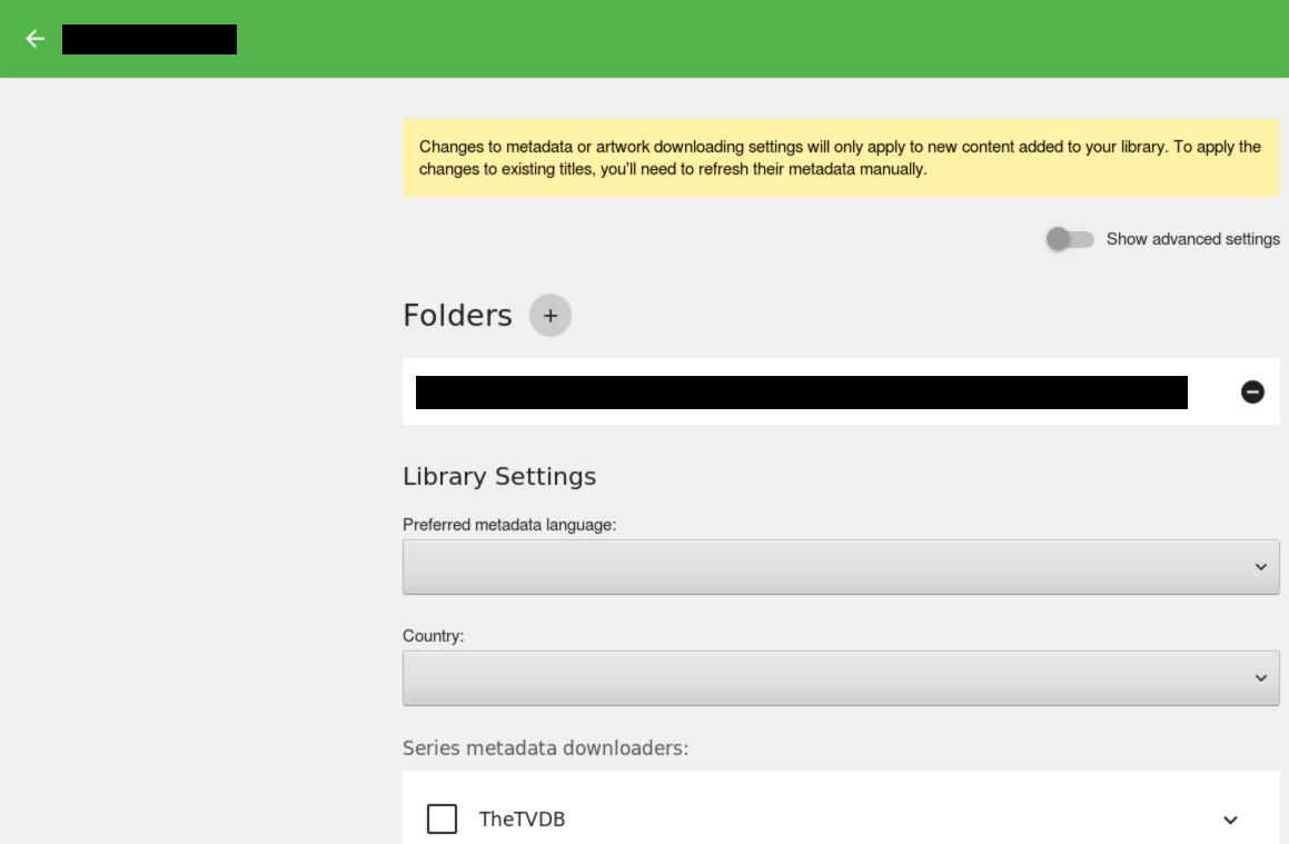 grl 0 Posted October 20, 2018 Posted October 20, 2018 Hi! Tried to change some setting on a mixed content library. But unfortunatly there's no save button and the settings are not saved when hitting the arrow back. Tried symlinking /var/lib/emby as suggested in another post but that didn't change the problem. regards Lukas