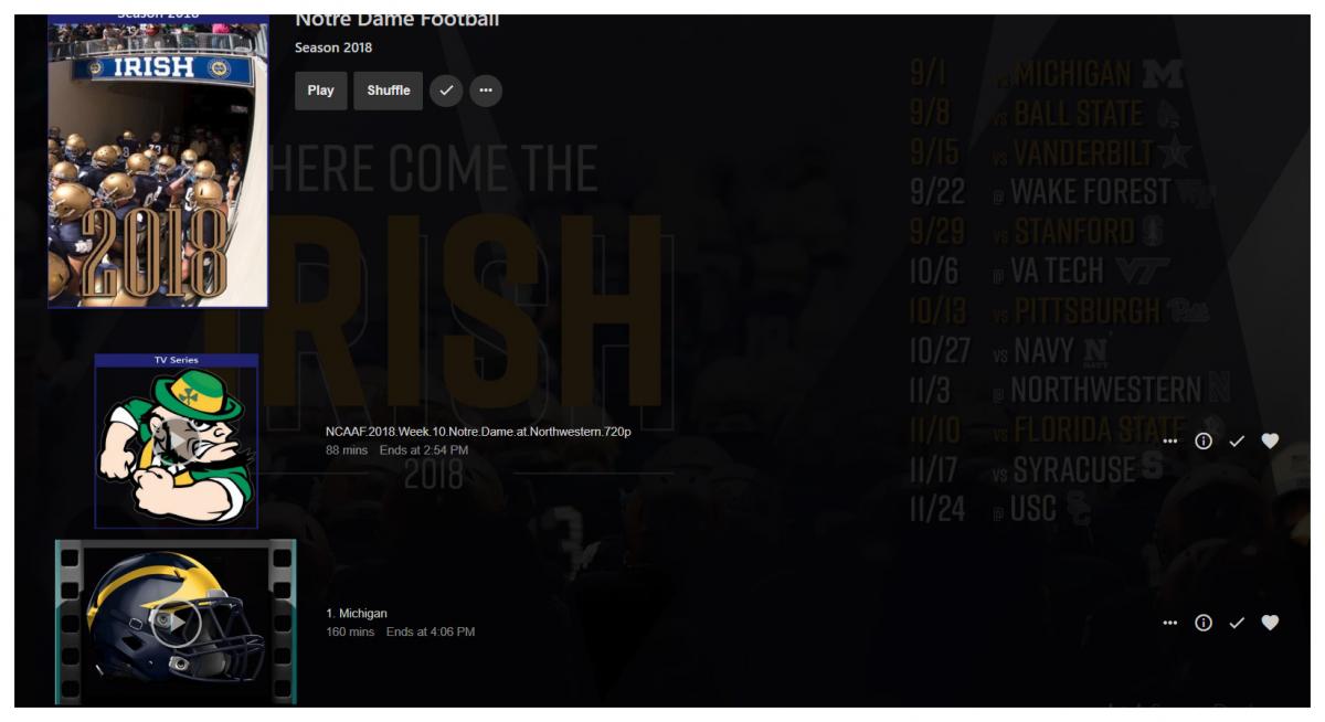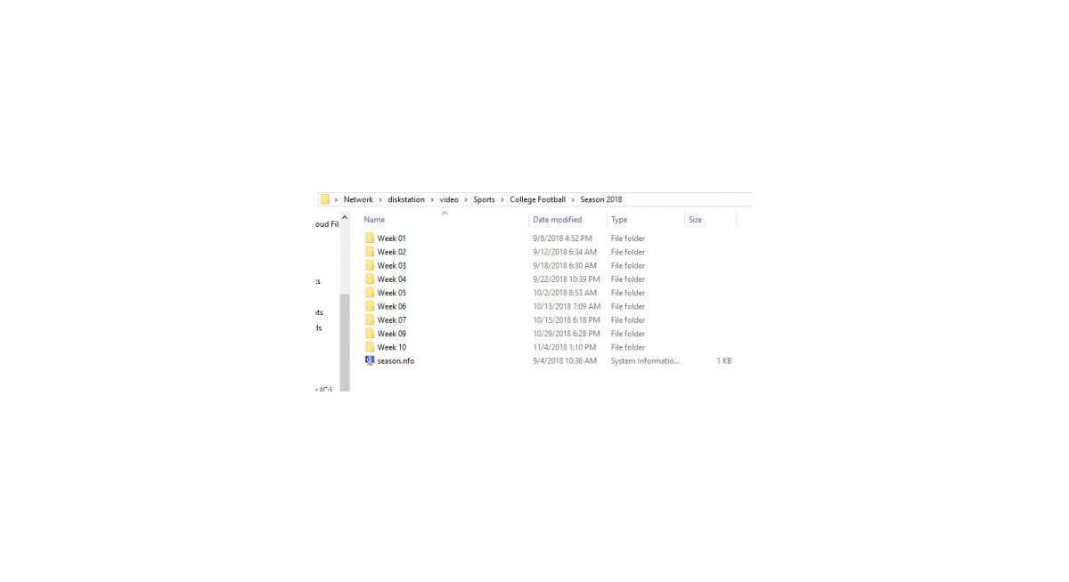jrhessey 21 Posted November 4, 2018 Author Posted November 4, 2018 (edited) I'm not sure how this is going to show up. The sports jpegs are the library setup. The college football one is a folder in the same library that works as expected. The UNC jpegs are pictures showing the files in explorer, and not showing up in Emby. As soon as a copy an NFO file to the mount union UNC folder in explorer, the season and game will show up in Emby. Edited November 4, 2018 by jrhessey