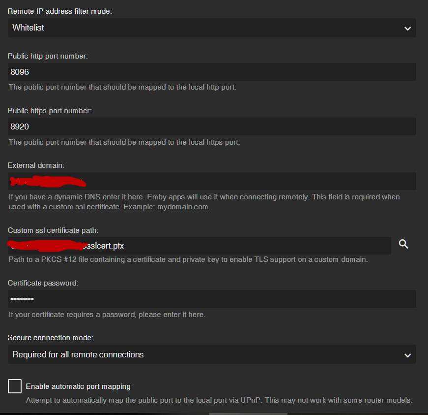 RobWayBro 28 Posted December 27, 2018 Posted December 27, 2018 Also, in Settings - Advanced did you enable (check) the option: Allow remote connections to this Emby Server?