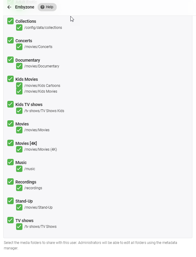 GrimReaper 4740 Posted January 26, 2021 Posted January 26, 2021 Just now, embyzone said: Sorry the snagit made the picture very small - This is so strange.... User: --> ACCESS If I unfold the Library section I get this: I really don't see any "Playlists will show up in the Library section." ? Do you actually HAVE any Playlists on your Home Screen or you are just trying to disable access in general?