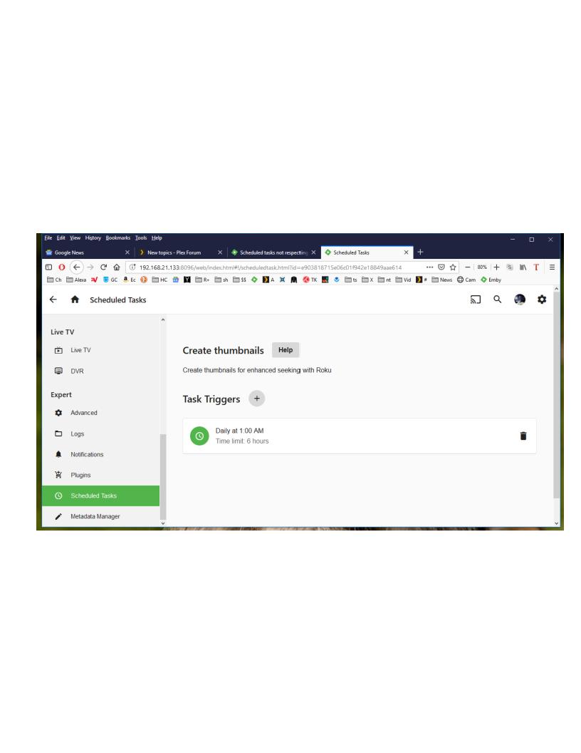 Gilgamesh_48 1240 Posted January 21, 2019 Author Posted January 21, 2019 If I am correct in post 8, your time limit is 60hrs not 6hrs. I guess as a manual test you change the custom trigger in \programdata\config\ScheduledTasks\thetaskid and drop a zero from "MaxRuntimeTicks". I "Think" you meant post #7. But no, the screen shot shows a time limit of 6 hours. It seems that what you are implying is that the scheduled task time limit is adding an extra zero. If that is the case I wonder if the error is in the way the server sets up time limits or there is an error in the plugin. It should be noted that other plugins seem to be working correctly.