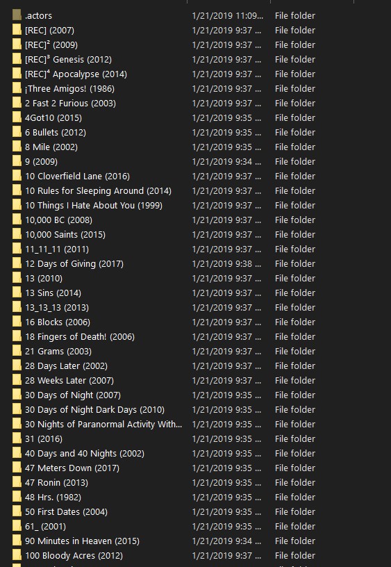 SenatorIvy 18 Posted January 18, 2019 Posted January 18, 2019 Yeah, though there are some movies that are in their own folders as well.