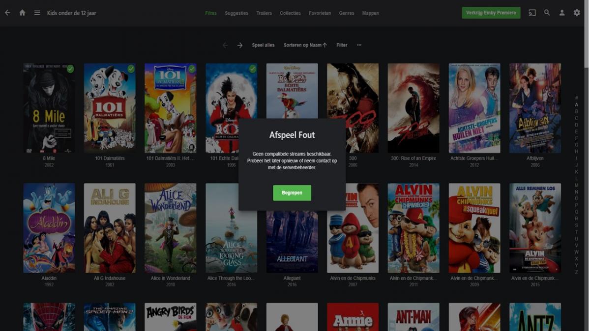 Chris_NL Emby 0 Posted January 19, 2019 Posted January 19, 2019 (edited) After using Emby for a year suddenly I can't play any movie anymore with the message "No compatible streams available". Does anyone knows what can be the problem. I'm running Windows 10 and have a VPN account (if it matters). The hard drive where all the movies are placed have all the rights. Anyone? On my tablet movies start, but on the pc where the server is does not. The thumbnail is from my PC Edited January 19, 2019 by Chris_NL Emby