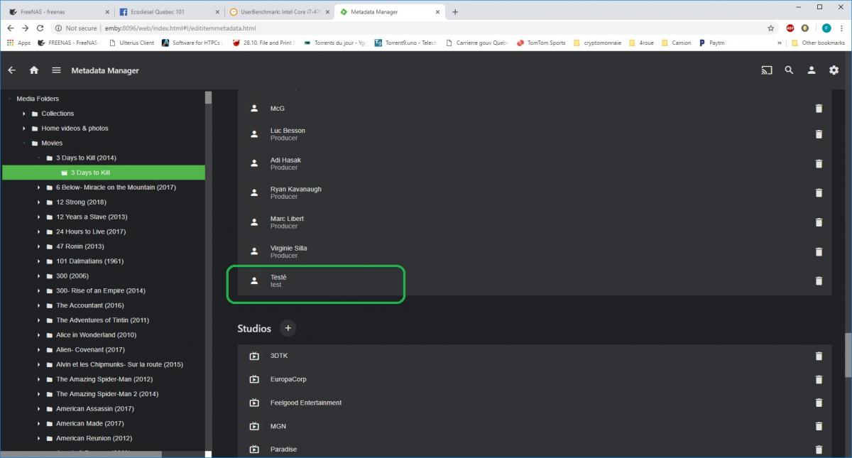 eraser8 55 Posted January 30, 2019 Author Posted January 30, 2019 (edited) Does that actor show up properly in the interface? Can you supply an image for them? Hi EBR, I was not able to find the the actor I added in the cast & crew list. But, if it can help, I found an already existing person with a special character "Sébastien Inizan" in the cast and crew and I was able to add picture to it. EDIT: Sorry, I think I did mistake by not clicking on savong button. Finally, yes, I can see my new actor with special character and also I can add a photo to it. Edited January 30, 2019 by eraser8