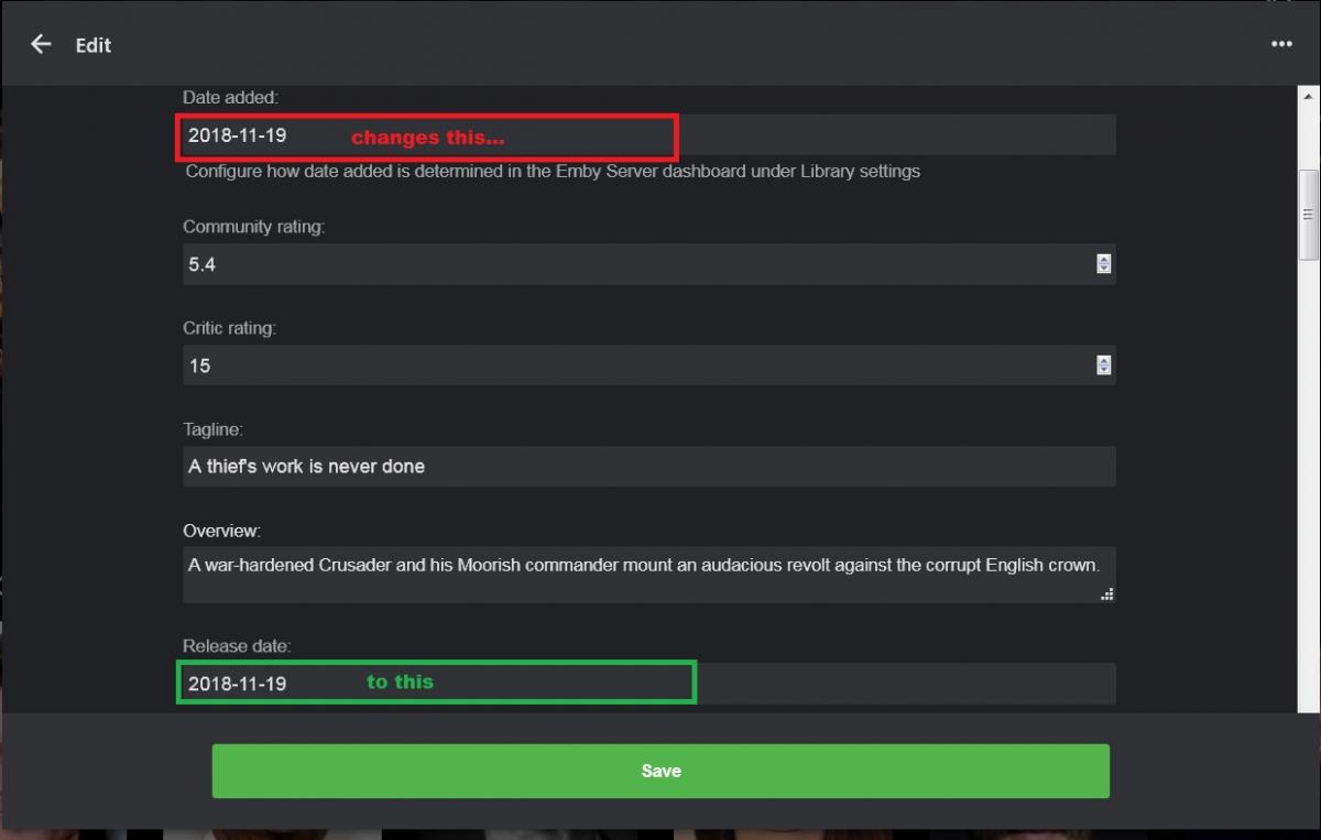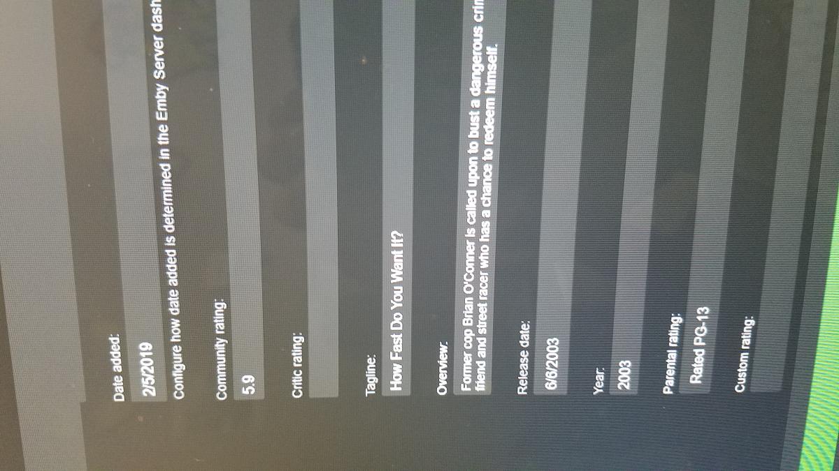 d00zah 149 Posted February 7, 2019 Posted February 7, 2019 (edited) Ah ok, I checked a movie (2 fast 2 furious) and it's not modified I use Media Center Master when I rename my movie files and move them and it creates an xml document that is placed in the media folder. I wonder if that is messing with TimeLord I THINK the problem may be that emby doesn't write db changes to the .xml. If it re-reads the original .xml,, the date gets reverted. I have emby configured to save metadata with media, so date changes are written to the .nfo & are consistent even if re-read. Make sense? edit: a script could be written to emulate what Time Lord does to the emby db... read the .xml & change the 'date added' field to the same value as the 'release date' field? still, use of native .nfos would be sooo much easier. Edited February 7, 2019 by d00zah