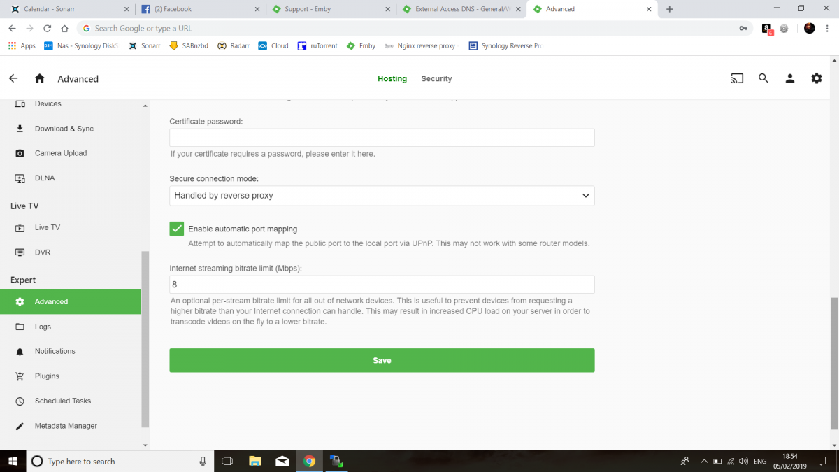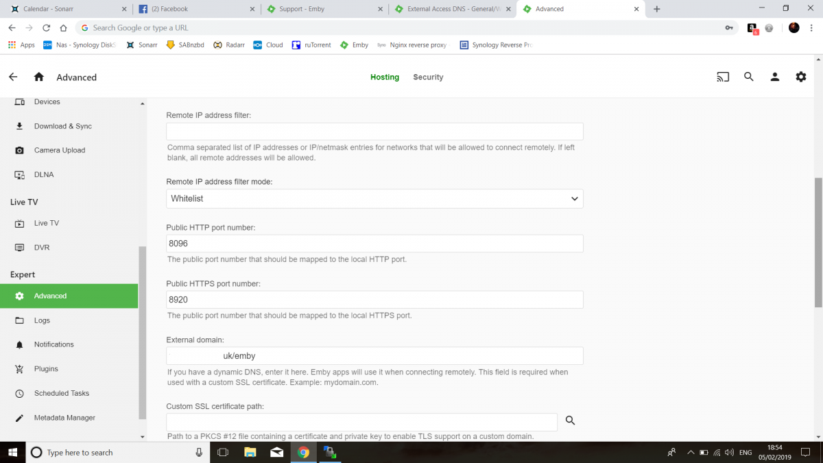 Luke 42079 Posted February 6, 2019 Posted February 6, 2019 You'll need to remove the /emby from external domain as that's not supported. The apps will actually add that on their own anyway.